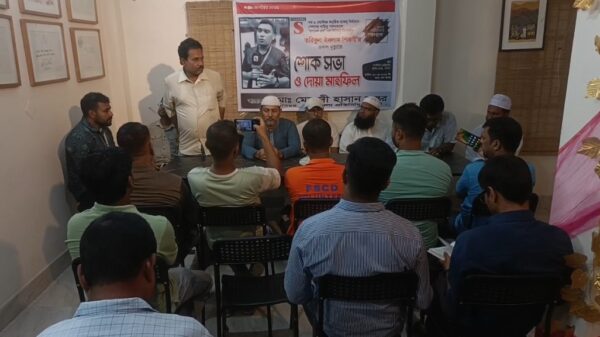 নওগাঁ প্রতিনিধি চ্যানেল এস টেলিভিশনের সিনিয়র রিপোর্টার তারিকুল ইসলাম শিবলীর অকাল মৃত্যুকে স্মরণে নওগাঁয় এক স্মরণসভা ও দোয়া মাহফিল অনুষ্ঠিত হয়েছে। রবিবার (২৮ সেপ্টেম্বর ২০২৫) বাদ আসর নওগাঁ শহরের মুক্তির